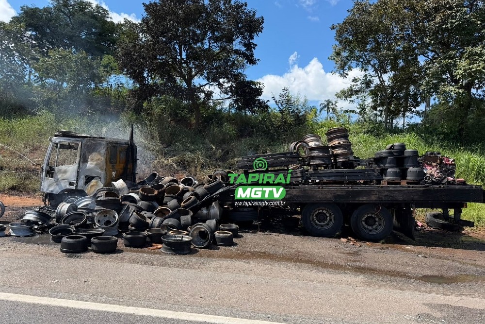 Vídeo: Carreta transportando açúcar pega fogo na BR-262