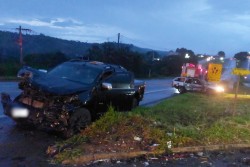 Colisão entre caminhonete e automóvel deixa três feridos na MG-050, em Formiga