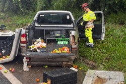 Vídeo: Casal de Campos Altos fica ferido após acidente entre carro e caminhão na BR-354, no trevo de Tapiraí