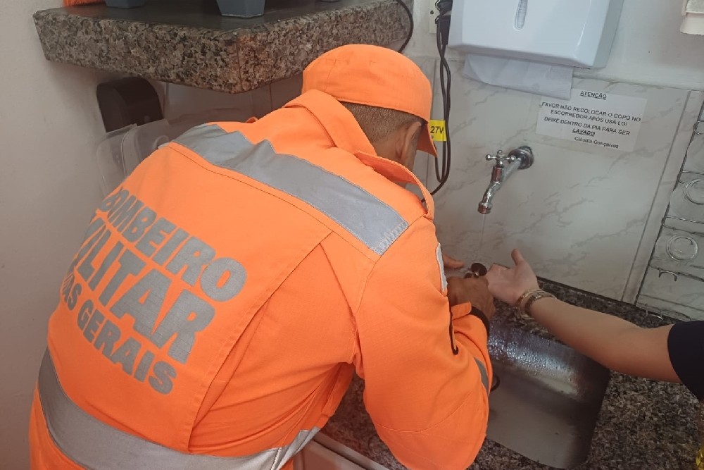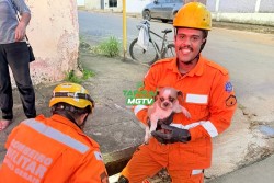 Corpo de Bombeiros resgata cachorro preso em bueiro, em Campos Altos