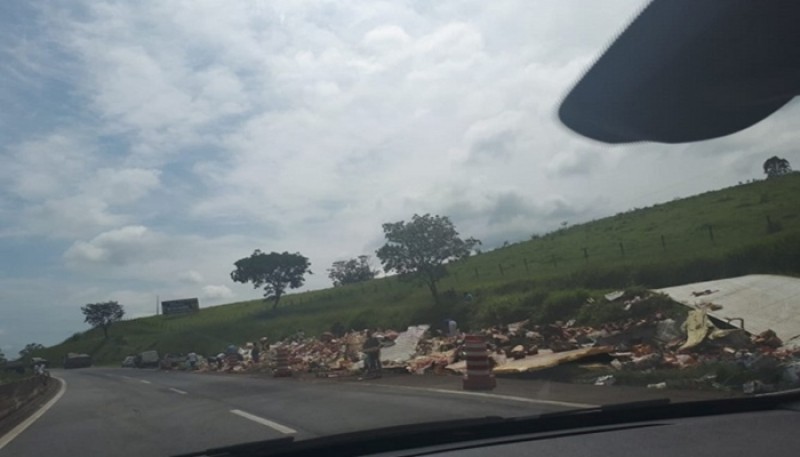 Segundo informações da concessionária Arteris Fernão Dias, a carreta tombou no KM-815, sentido Belo Horizonte, derramando parte da carga de frutas na rodovia.