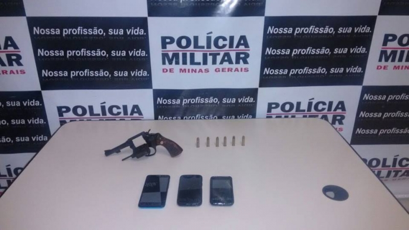 Por volta das 02:00h da manhã, a Polícia Militar de Luz compareceu à Rua TREZE DE MAIO, Bairro MORRO DO JORGE, onde as vítimas G., P. e G. relataram que trabalham na empresa CLAP ALIMENTOS e, quando se deslocavam para o trabalho, foram abordados por dois indivíduos, um deles armado, que anunciaram o assalto e roubaram dois aparelhos de telefone celular e uma bicicleta. Durante rastreamento, a guarnição abordou os suspeitos J.L.A.P., 19 anos e D.J.P.R., 18 anos e, durante busca pessoal, localizou três telefones celulares e um revólver calibre .38, marca TAURUS, carregado com 06 (seis) munições intactas. Em parlamentação, os envolvidos confessaram o delito. As vítimas reconheceram os objetos bem como os meliantes, que foram presos e conduzidos para à Delegacia de Polícia com material apreendido.
