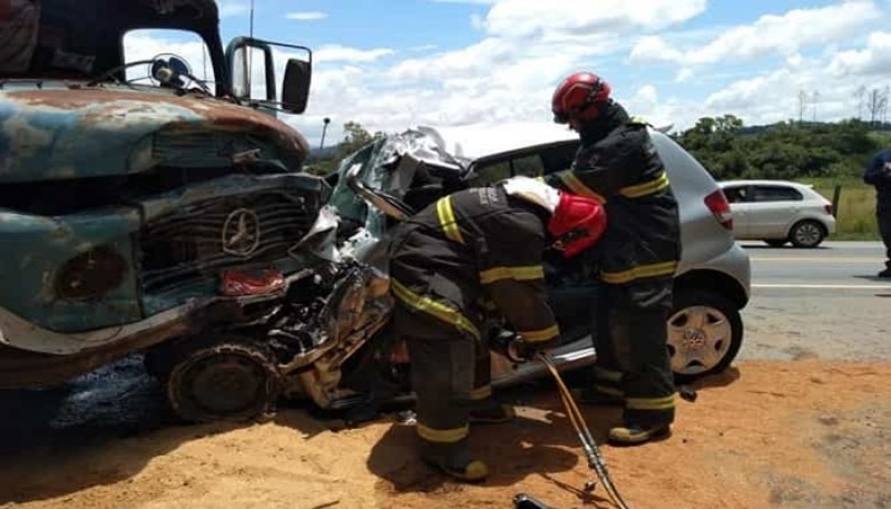 Uma mulher morreu numa batida entre um carro e um caminhão, no fim da manhã deste domingo (16), na BR-459. O acidente foi no KM 112 da rodovia, entre Pouso Alegre e Santa Rita do Sapucaí, no Sul de Minas. A vítima fatal era a motorista do carro. Ela viajava sozinha.