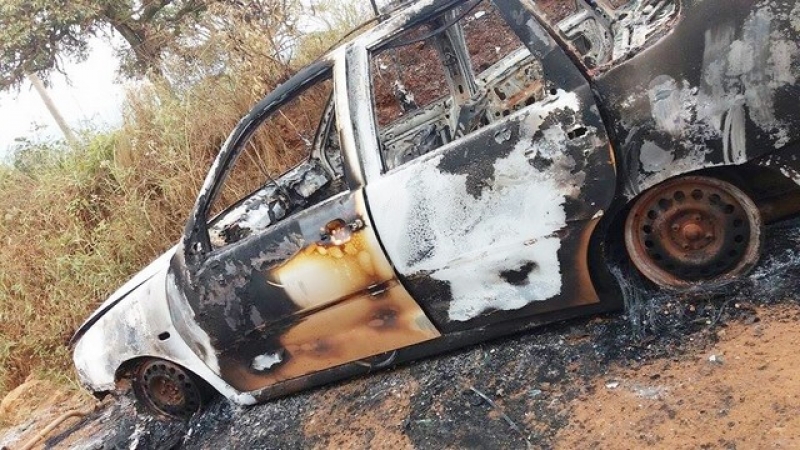 Um automóvel ficou totalmente destruído pelas chamas na estrada vicinal da Serra do Santinho, município de Carmo do Paranaíba, no final da manhã de sábado(20/05).