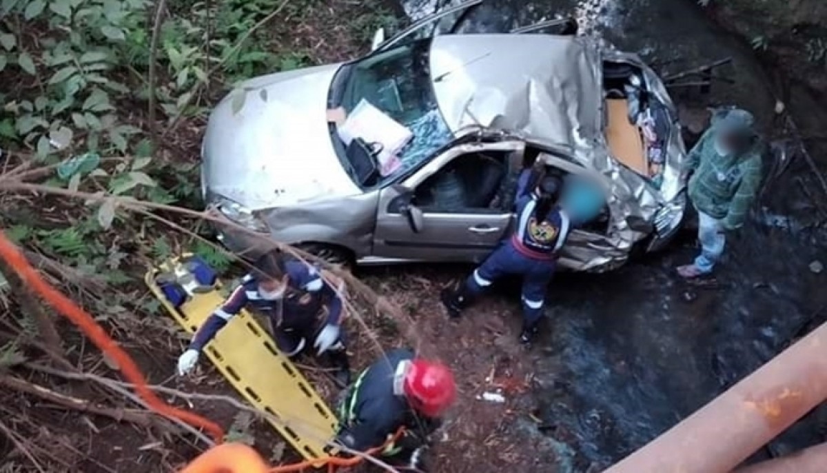 De acordo com o Serviço de Atendimento Móvel de Urgência (Samu), o carro caiu de uma ponte e ficou às margens do córrego.
