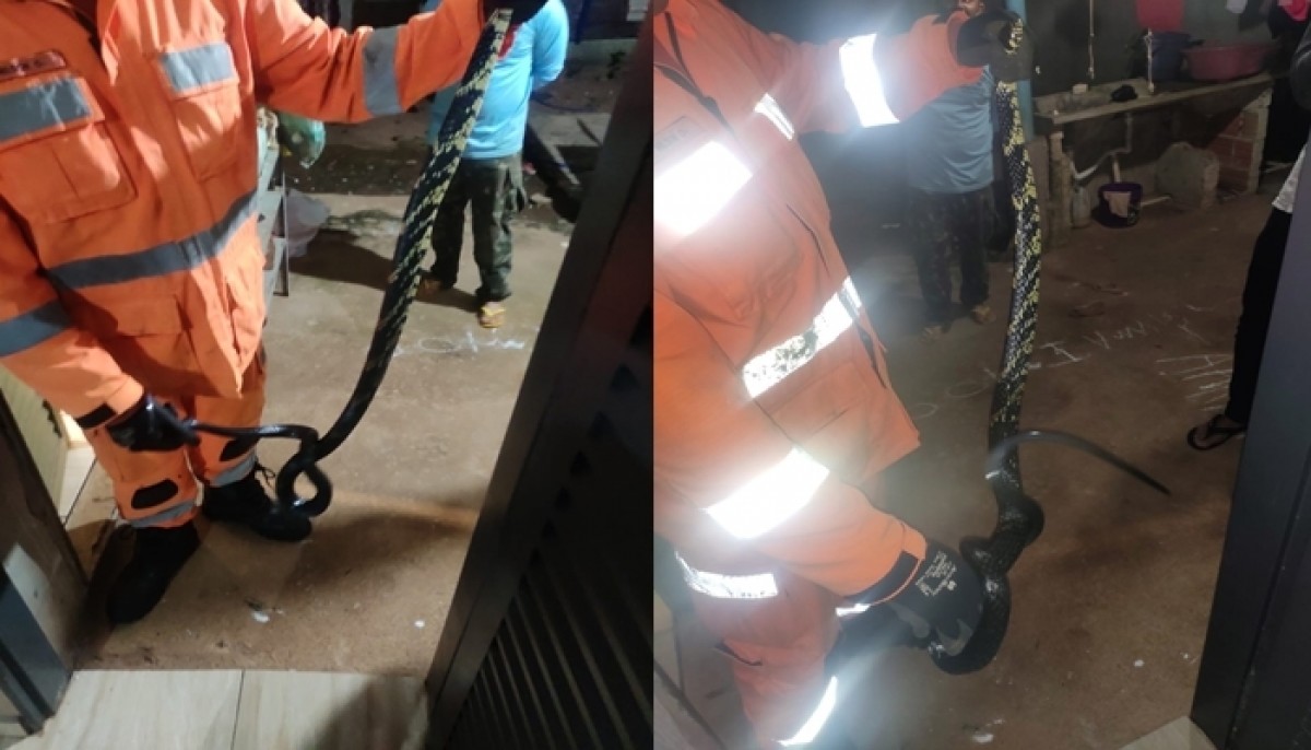 Segundo o Corpo de Bombeiros, a cobra tinha aproximadamente 2 metros de comprimento esta dentro do cesto. A cobra foi capturada com uso de um gancho e solta em uma área de mata da cidade.