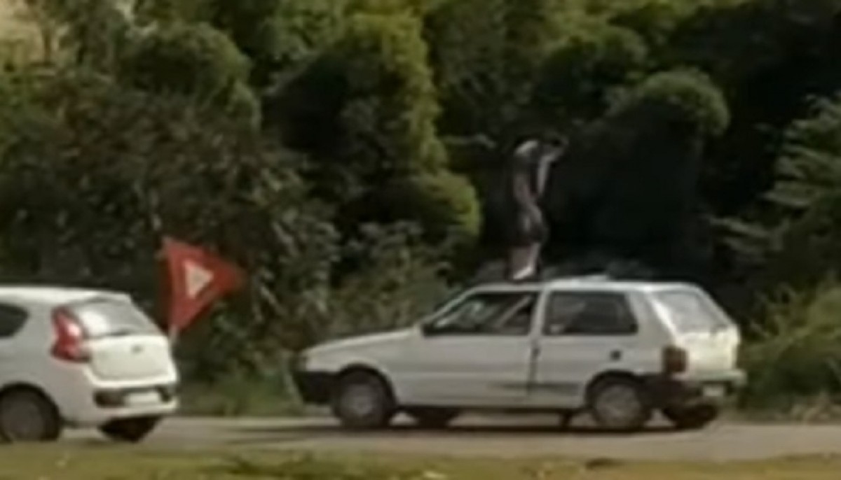 Um homem quebrou o próprio carro após ser parado em uma blitz da Polícia Rodoviária Estadual na manhã desta quarta-feira (17) na MGC-491, no trevo de Elói Mendes.