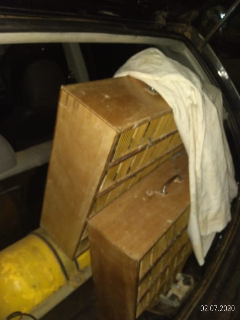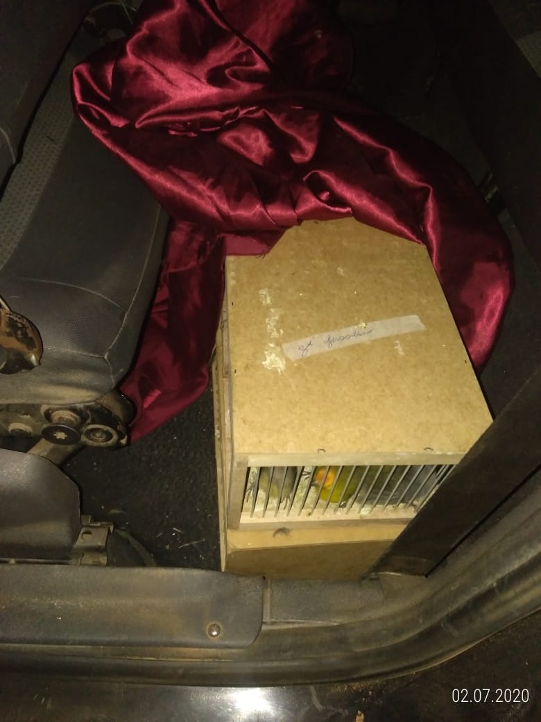 Após vistoria no porta-malas do veículo, os policiais encontraram 138 pássaros da fauna silvestre brasileira em condição de maus tratos. Os animais estavam acondicionados em espaço minúsculo, sem água e alimentação e o local estava muito sujo.