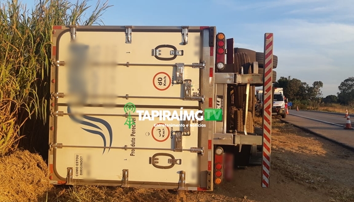 De acordo com a Polícia Rodoviária Federal (PRF), o veículo seguia de Perdizes para Betim, quando apresentou defeito mecânico, quebrou a mola dianteira e tombou às margens da rodovia.