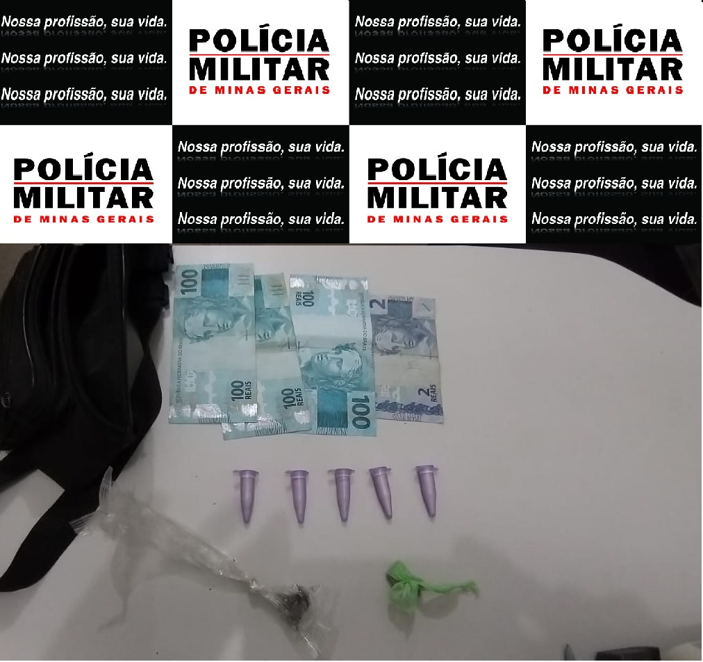 Durante busca pessoal, os militares encontraram com três autores, cinco pinos de substância análoga a cocaína, duas buchas de substância análoga a maconha e R$ 302,00, em dinheiro. Eles foram conduzidos presos também pela prática de tráfico de substâncias entorpecentes.