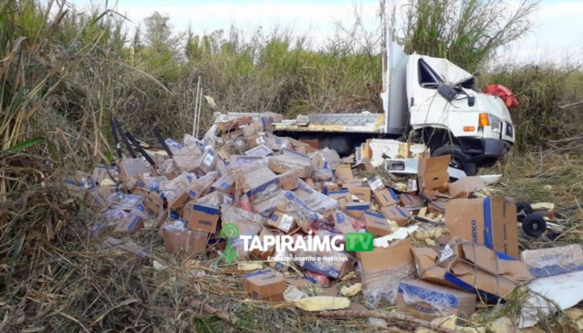 Um caminhão baú carregado de carne tombou e teve parte da carga saqueada, na tarde desta quarta-feira (02) na BR-354, em Iguatama. O acidente aconteceu por volta das 16h.