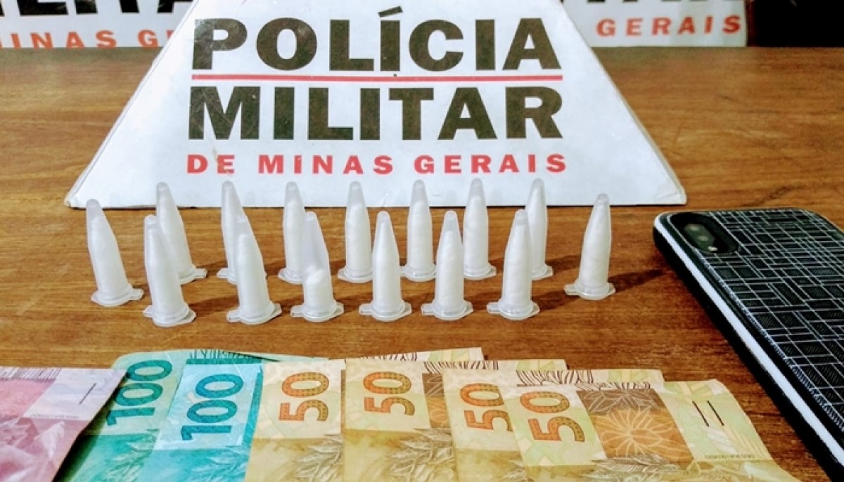 Ao todo foram apreendidos 15 pinos de cocaína, R$ 407,00 em dinheiro e um aparelho celular.