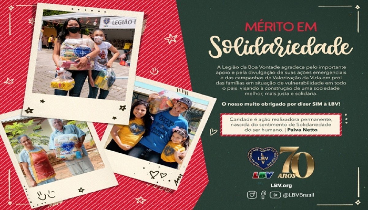 Confira todas as ações realizadas pela LBV no endereço @LBVBrasil no Instagram, no Facebook, no YouTube e no Twitter. Acesse www.lbv.org e continue colaborando com a Legião da Boa Vontade.