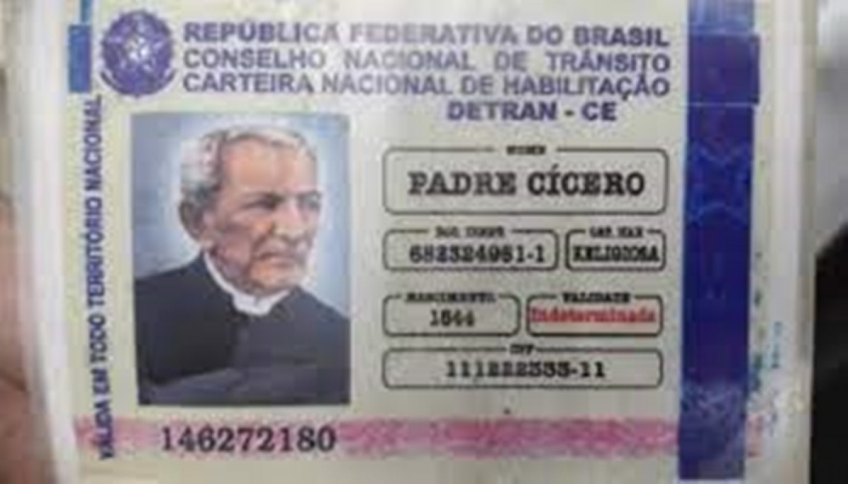 Um idoso de 62 anos foi parado em uma blitz no interior de Alagoas, nessa quarta-feira (10), e apresentou uma 'carteira de habilitação' com nome e fotos de Frei Damião e de Padre Cícero - cada lado era uma pessoa. O homem estava em uma motocicleta sem capacete, sem placa e sem retrovisor. E ainda levava a neta, de 7 anos, na garupa.
