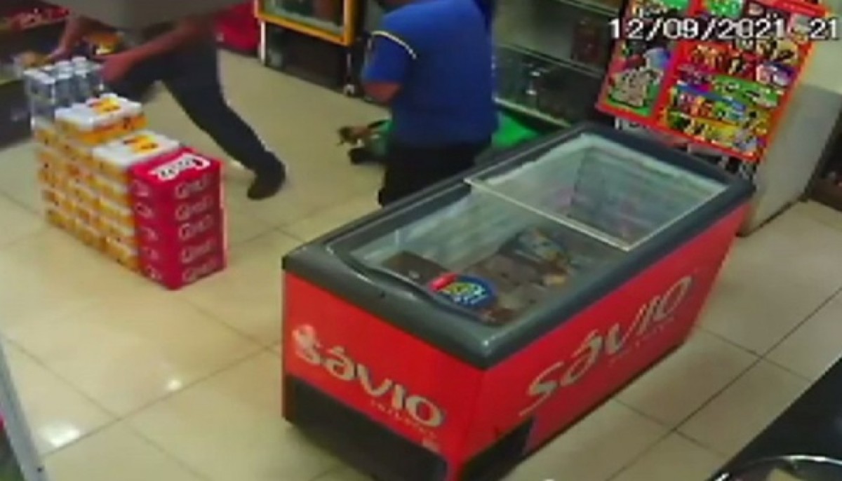 Um suspeito morreu depois de acertar acidentalmente um tiro contra si próprio durante um assalto em Figueira, no Norte Pioneiro do Paraná, segundo a Polícia Militar (PM). Uma câmera de segurança registrou o momento.