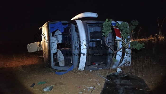 Um ônibus de transporte intermunicipal, com placas de Porteirinha/MG, tombou na noite desta quarta-feira (22) e deixou uma pessoa morta e pelo menos vinte e dois passageiros feridos na BR-146, município de Serra do Salitre, no sentido Araxá.