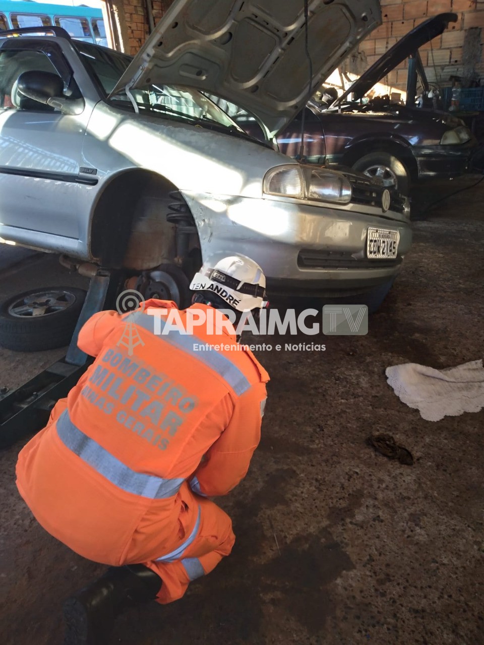 De acordo com o Corpo de Bombeiros, o solicitante relatou que seu patrão estava trabalhando debaixo do carro quando o cavalete que sustentava o automóvel escorregou. Com o deslocamento, o veículo caiu por cima da cabeça do mecânico.