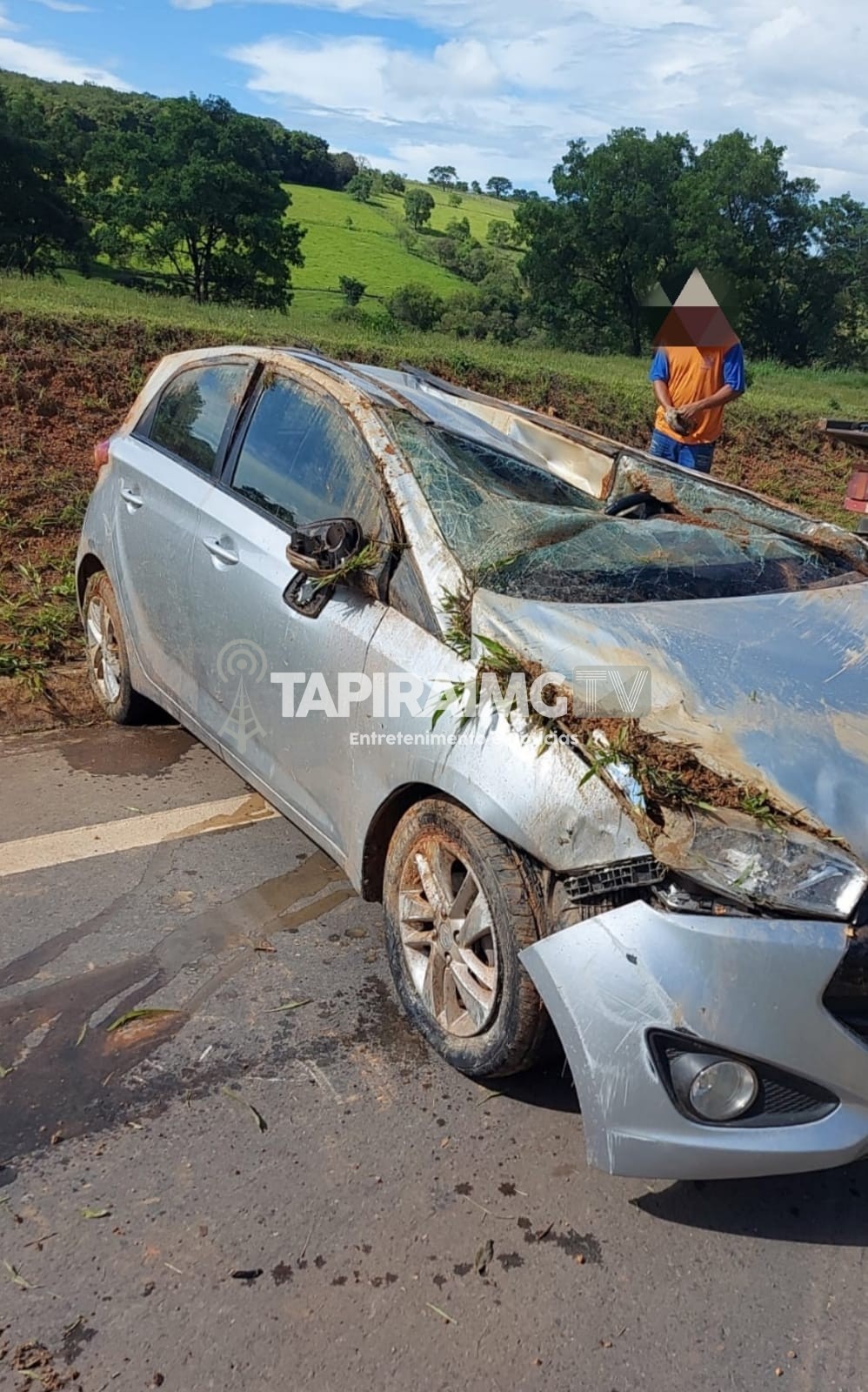 De acordo com informações, um veículo Hyundai/HB 20, seguia deslocando de Pimenta para Córrego Fundo, quando ao realizar uma curva derrapou na pista molhada e bateu contra um barranco e capotou.