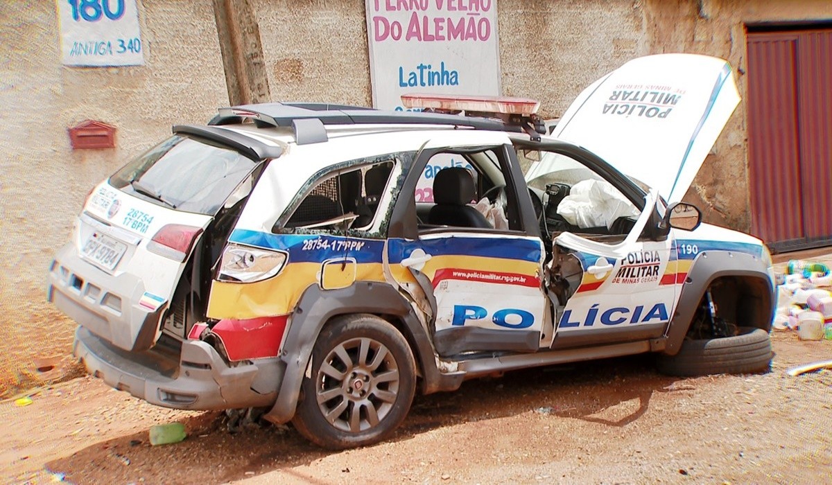 Dois policiais militares ficaram feridos durante uma perseguição em que criminosos jogaram um carro roubado contra uma viatura da Polícia Militar (PM) na manhã desta quinta-feira (22) no Bairro Dom Almir, em Uberlândia.