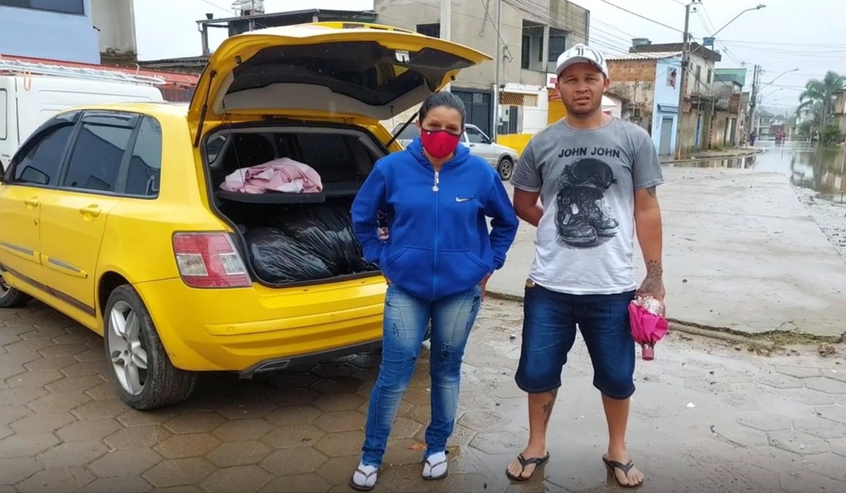 Fabiana e Ronaldo Brito moram no bairro São Geraldo. Um dos bairros mais atingidos pela chuva em Pouso Alegre (MG). Segundo Fabiana, mesmo tendo como ir para casa de familiares, eles optaram por dormir no carro junto com as roupas que conseguiram salvar.