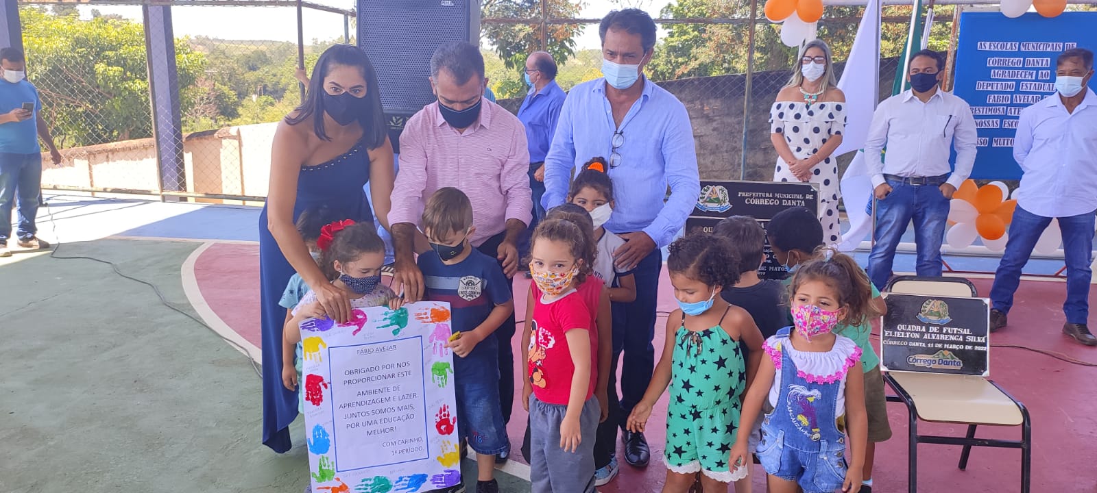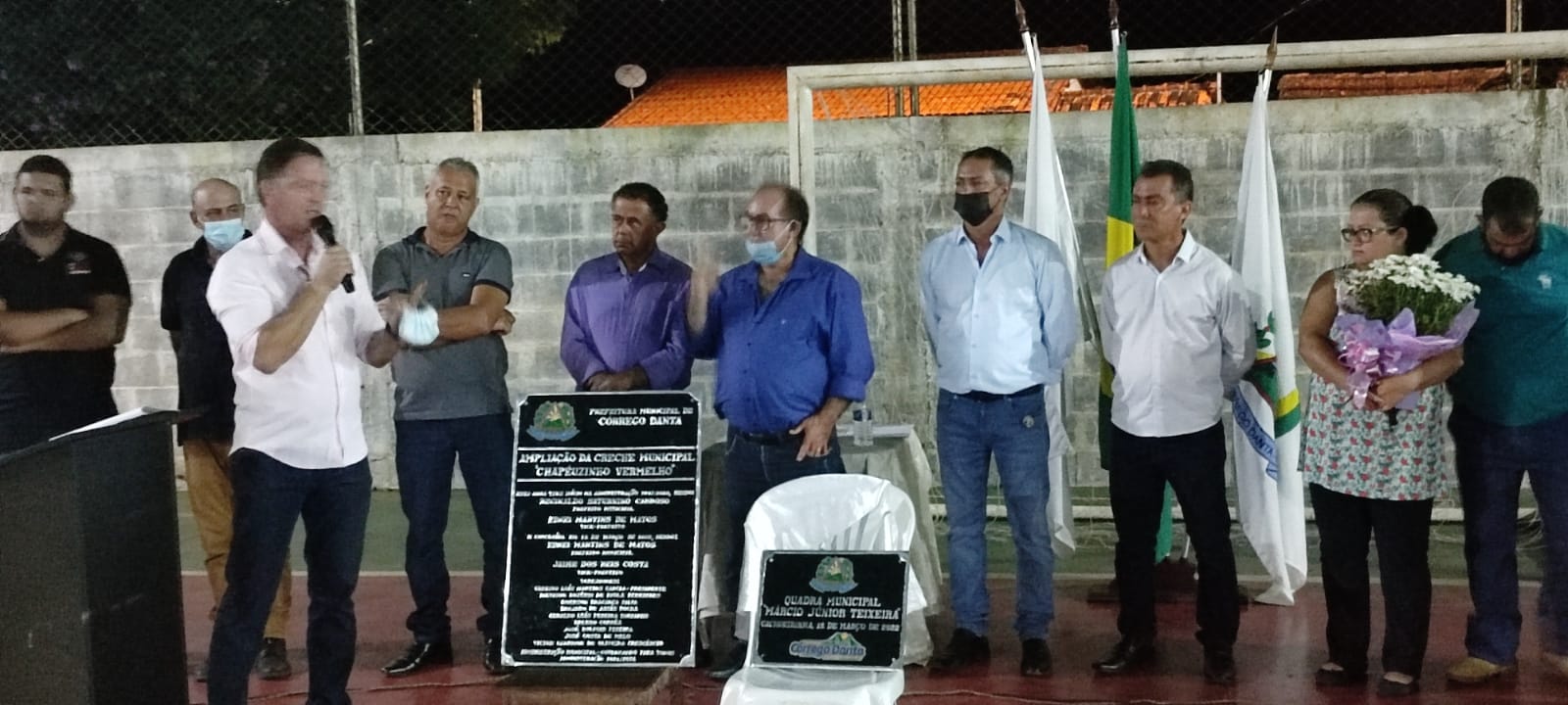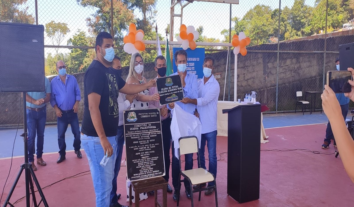 Na última sexta-feira (18), a Prefeitura Municipal de Córrego Danta fez a entrega de duas importantes obras na área da educação: na parte da manhã, alunos, professores e autoridades participaram da cerimônia de inauguração da Cobertura da Quadra “Marco Antônio Pereira Crescêncio”, situada na Escola Municipal “Padre João Evangelista”, em Córrego Danta.