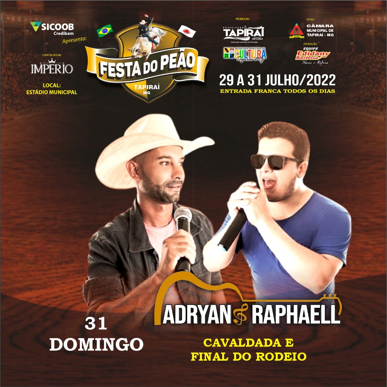 Dia 31 de julho (domingo) – Cavalgada, final do rodeio e show com Adryan e Raphaell