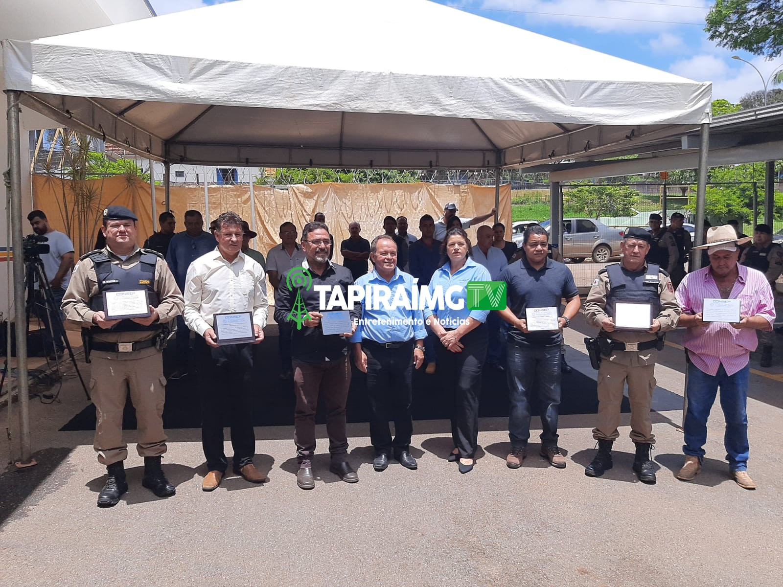 Durante a solenidade, o CONSEP de Bambuí entregou uma placa de agradecimento ao Coronel Wemerson, ao 2° Ten Camilo e outras autoridades que apoiaram no projeto.