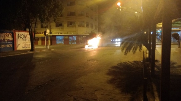 Um veículo Stillo pegou fogo ontem (25), na Avenida Brasil, em Lagoa da Prata. Segundo informações de populares, o veículo transitava normalmente pela avenida quando teve uma pane elétrica.
