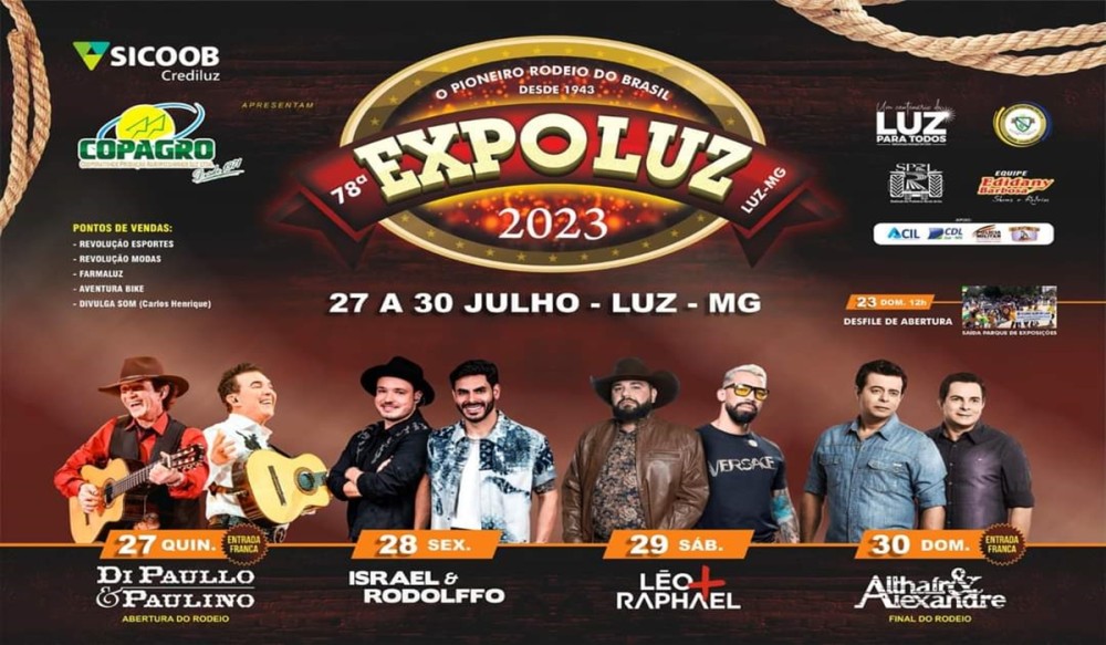 Vem aí a tradicional Expo Luz 2023. O vento acontecerá de 27 a 30 de julho, no Parque de Exposições.