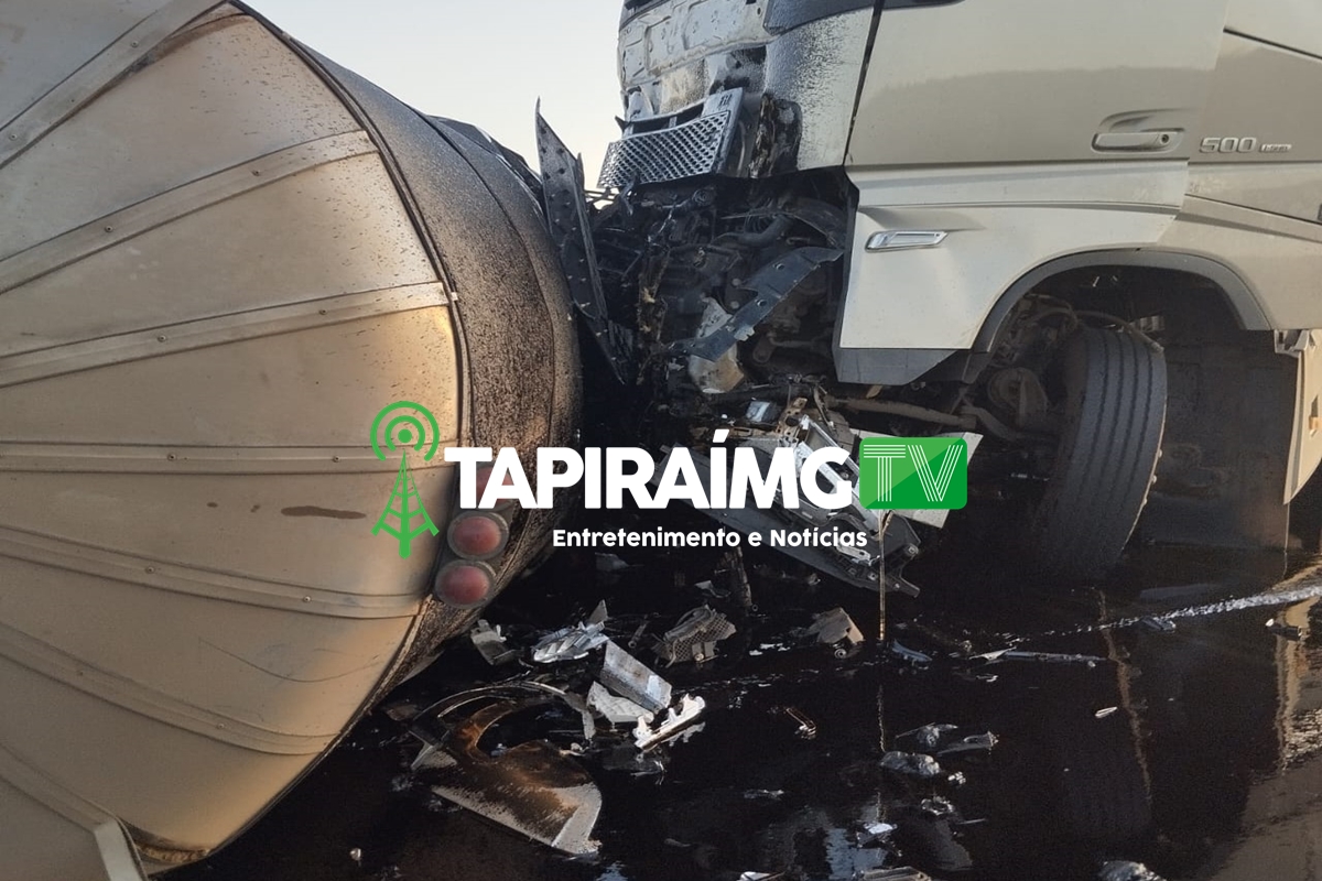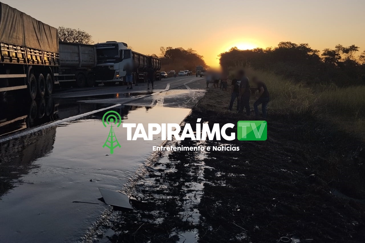 De acordo com informações apuradas pelo Tapiraimg TV, no local houve um acidente envolvendo um veículo Toyota/Etios e quatro carretas. Uma carreta, que estava carrega de piche tombou sobre a via e houve derramamento de carga.
