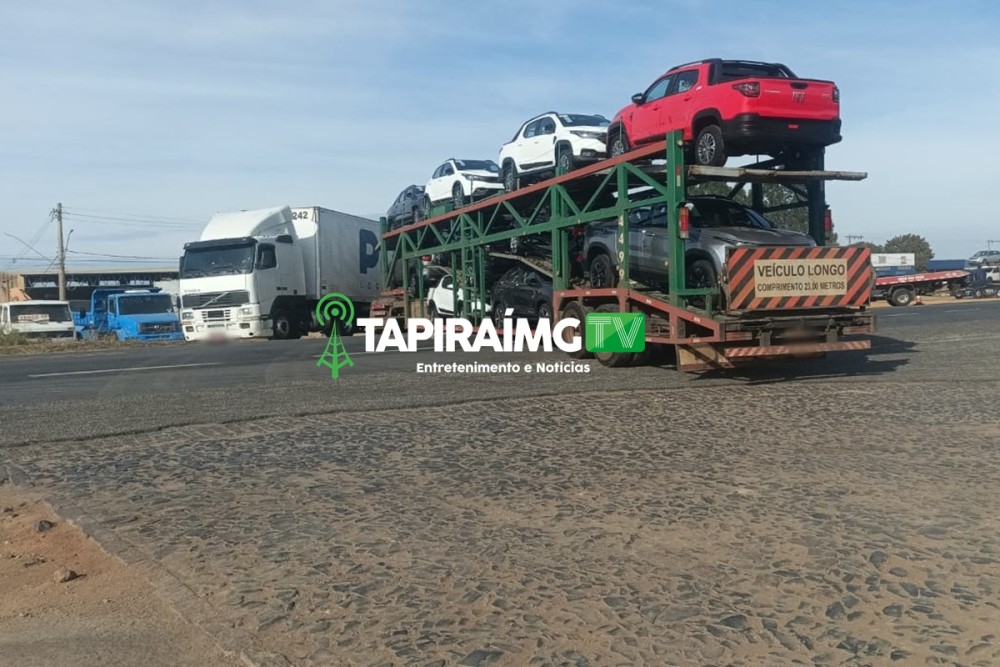 Uma carreta-cegonha ficou presa na BR-262 ao sair de um posto de combustíveis na manhã desta quinta-feira (15). A ocorrência foi registrada por volta das 08h30, na altura do KM 481, no município de Bom Despacho.