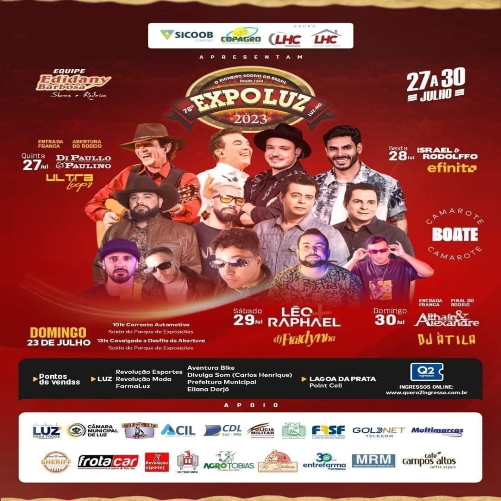 A tradicional Expo Luz 2023 começa nesta quinta-feira (27). O vento acontecerá de 27 a 30 de julho, no Parque de Exposições.