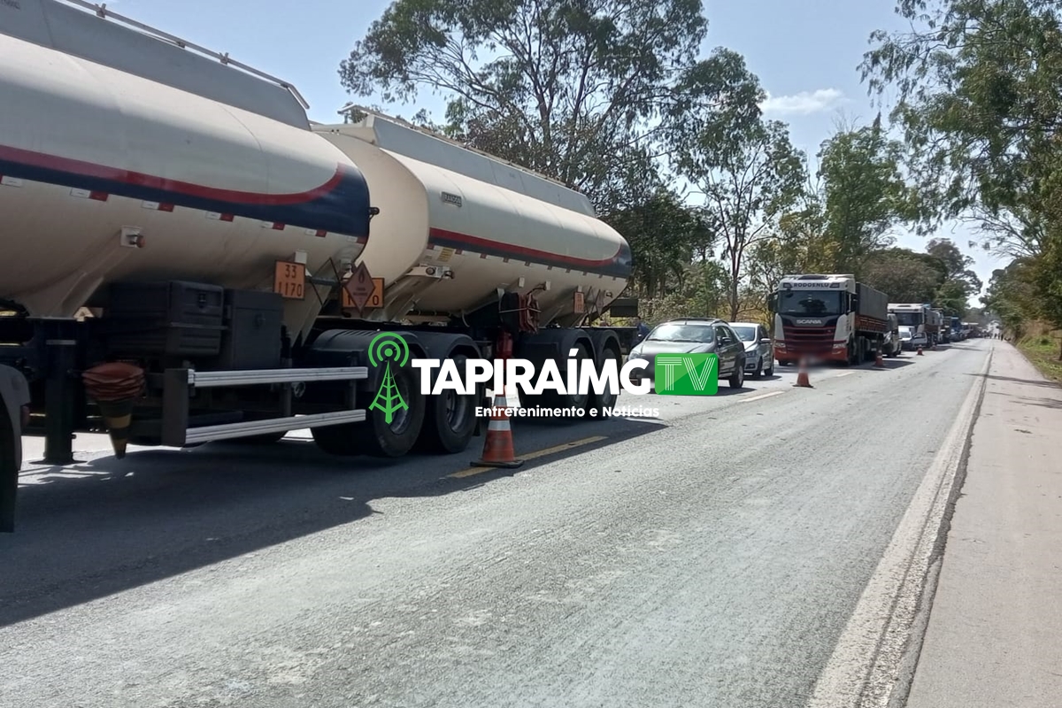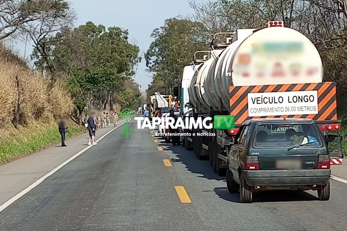 O corte de uma árvore de aproximadamente 20 metros de altura interditou o trecho no KM 507 da BR-262, em Luz, na manhã desta segunda-feira (14).