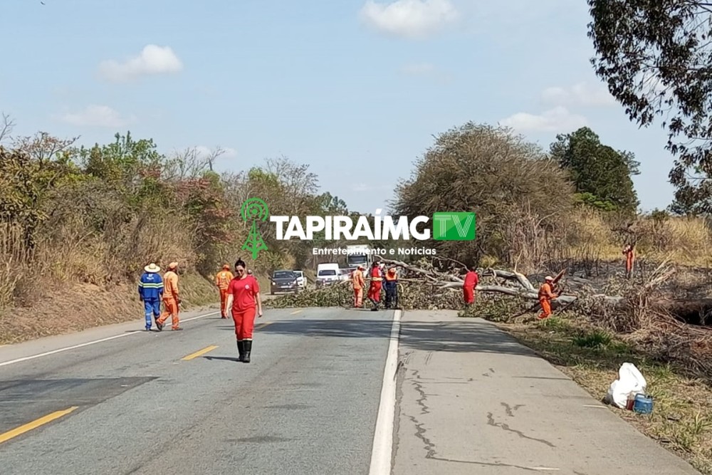 Um vídeo registrado pela reportagem do Tapiraimg TV, mostra o momento da queda da árvore, que atingiu parte da via no sentido Triângulo Mineiro.
