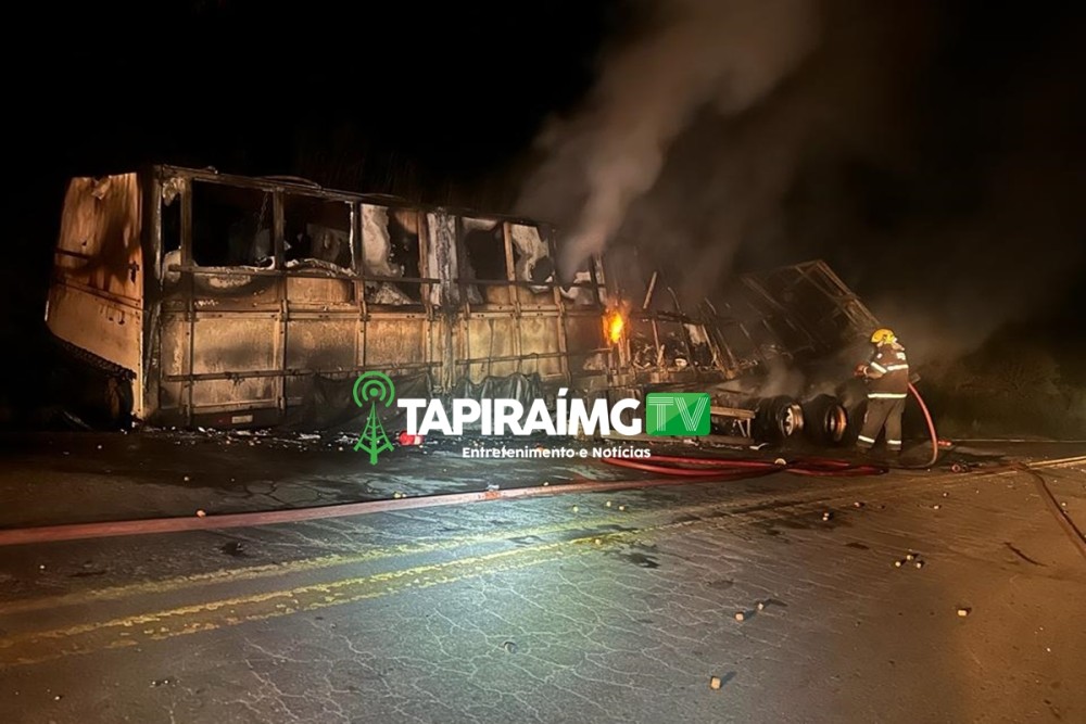 Uma carreta ficou totalmente destruída na noite da última sexta-feira (15/09) após pegar fogo na MG-170, no município de Moema. O incêndio foi registrado por volta das 20h20, na altura do KM 05.