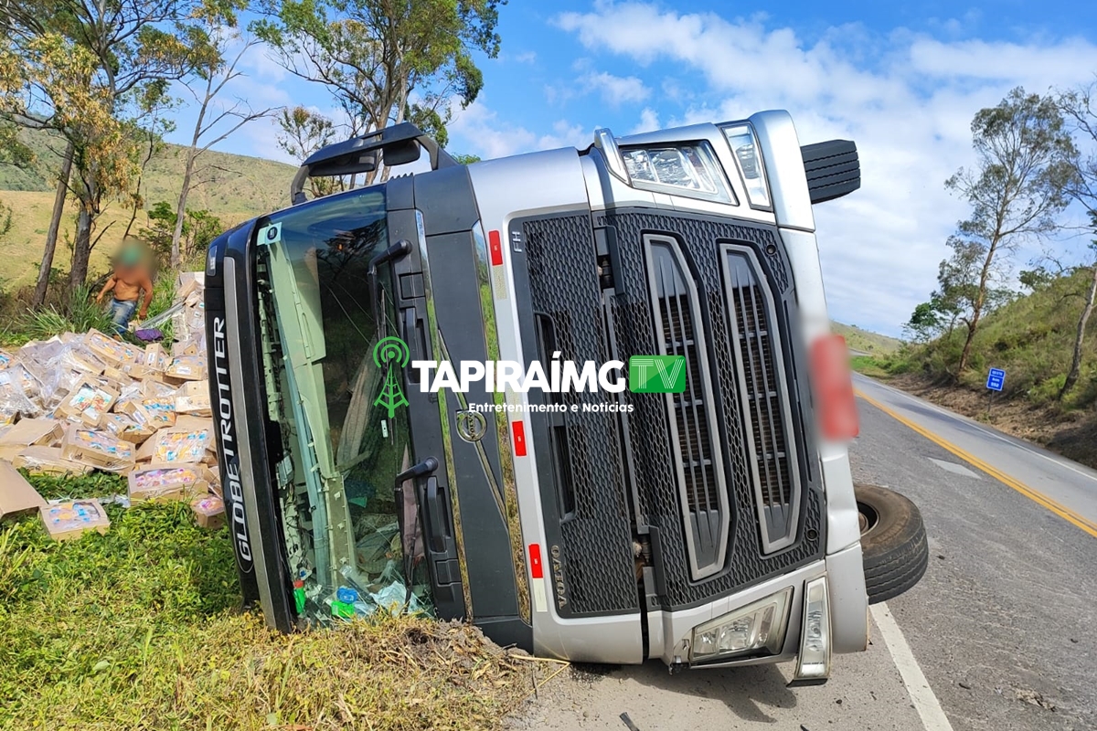 Uma carreta que transportava alimentos refrigerados tombou na manhã desta segunda-feira (06.Nov.23) na BR-262 no município de Luz. O acidente aconteceu por volta das 07h30, na altura do KM 552.