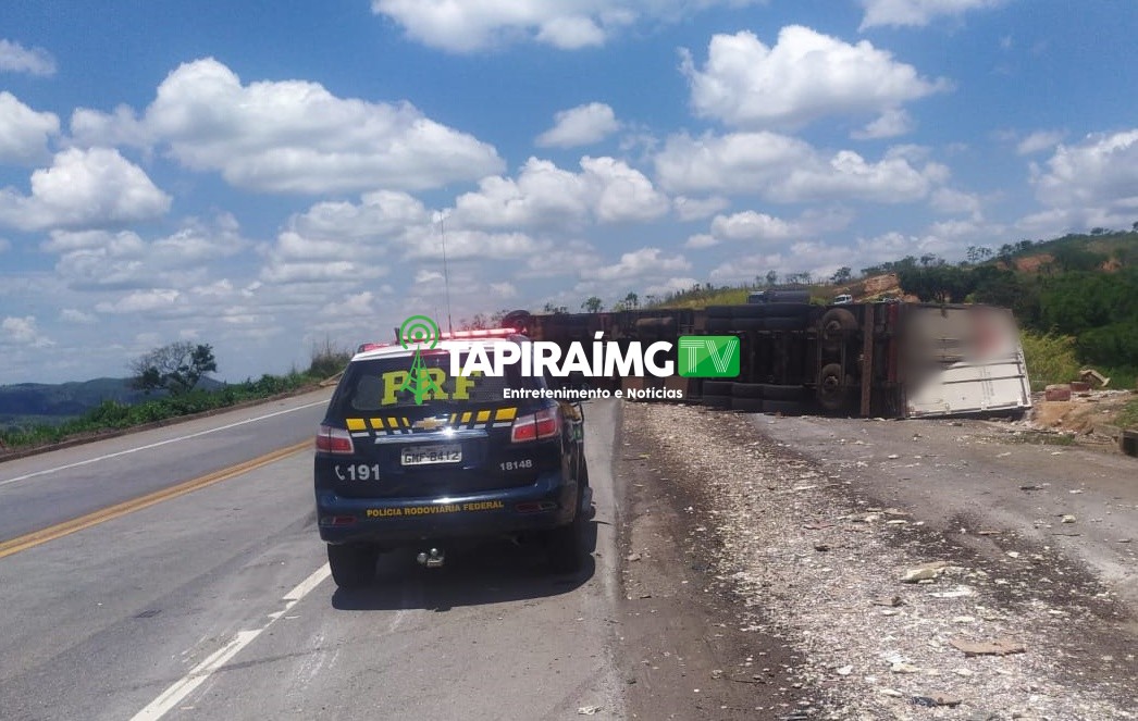De acordo com informações, a carreta carregada com caixas de alho seguia no sentido Campos Altos/Luz, quando tombou em uma curva. O veículo ficou atravessado na via e deixou o trânsito lento no local.