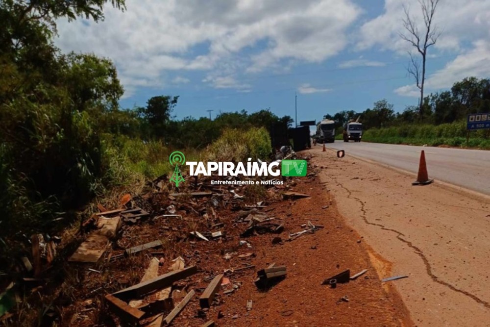 Um caminhão carregado com sucata tombou na madrugada desta segunda-feira (04.Dez.23) na BR-262, no município de Luz. O acidente aconteceu por volta das 03h20, na altura do km 517.