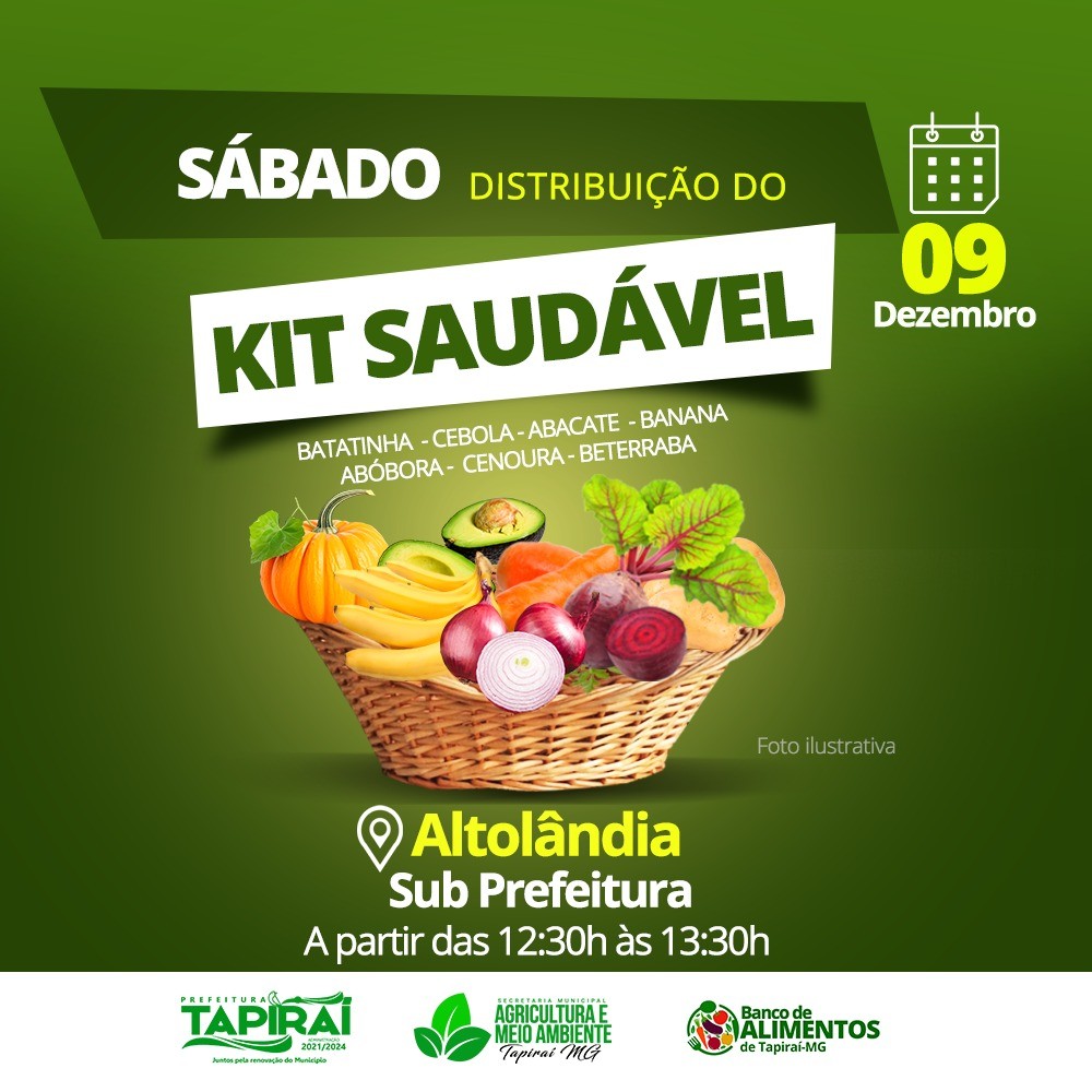 Em A Prefeitura de Tapiraí vai realizar mais uma distribuição de kit de verduras neste sábado (09.Dez.23).