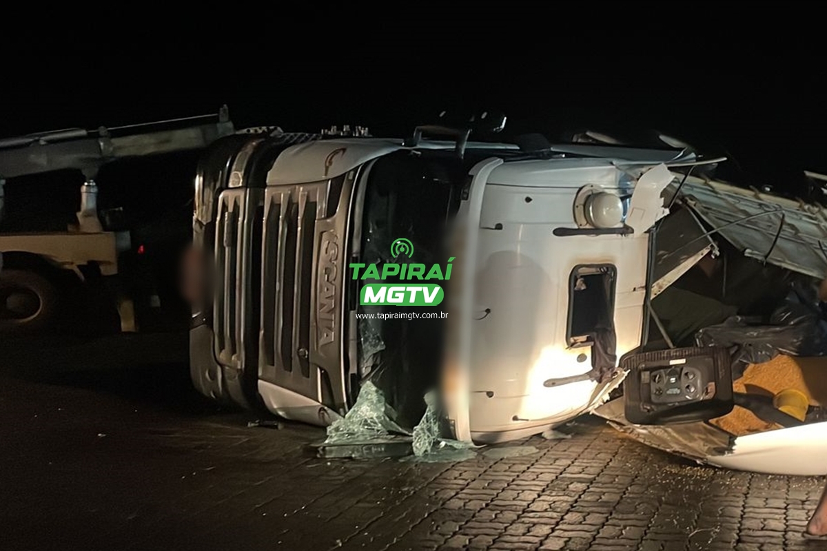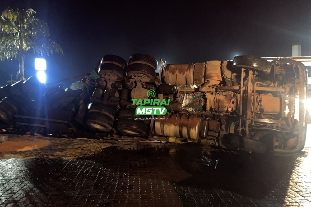 Uma carreta tombou o início da noite desta segunda-feira (04.Mar.24), na entrada de um pátio de um posto de combustíveis às margens da BR-262, no município de Córrego Danta.