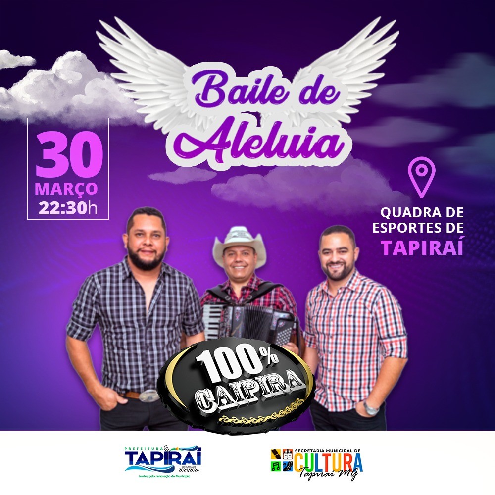 A Prefeitura Municipal de Tapiraí realiza na noite do sábado (30.Mar.24), o baile de aleluia com a Banda 100% Caipira.