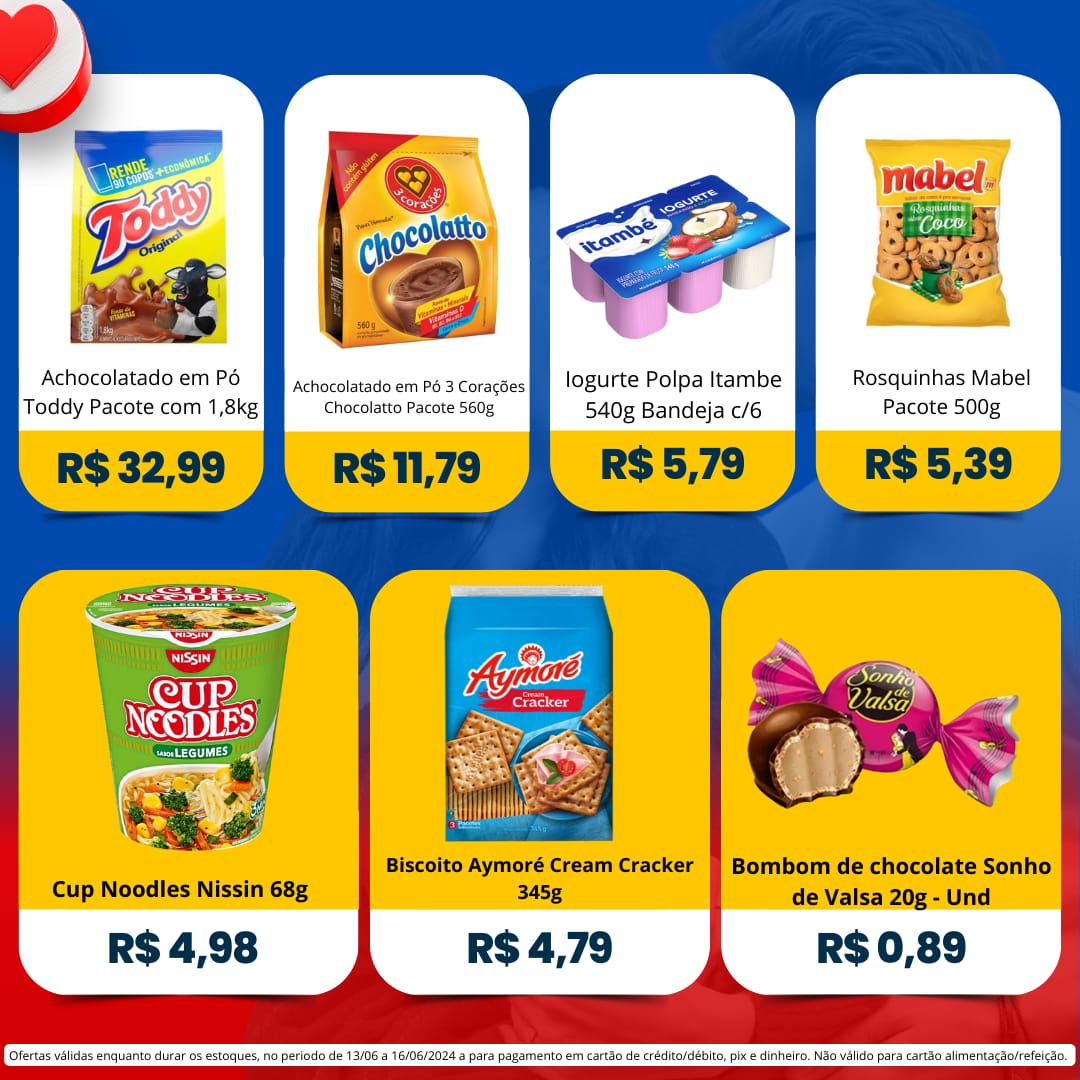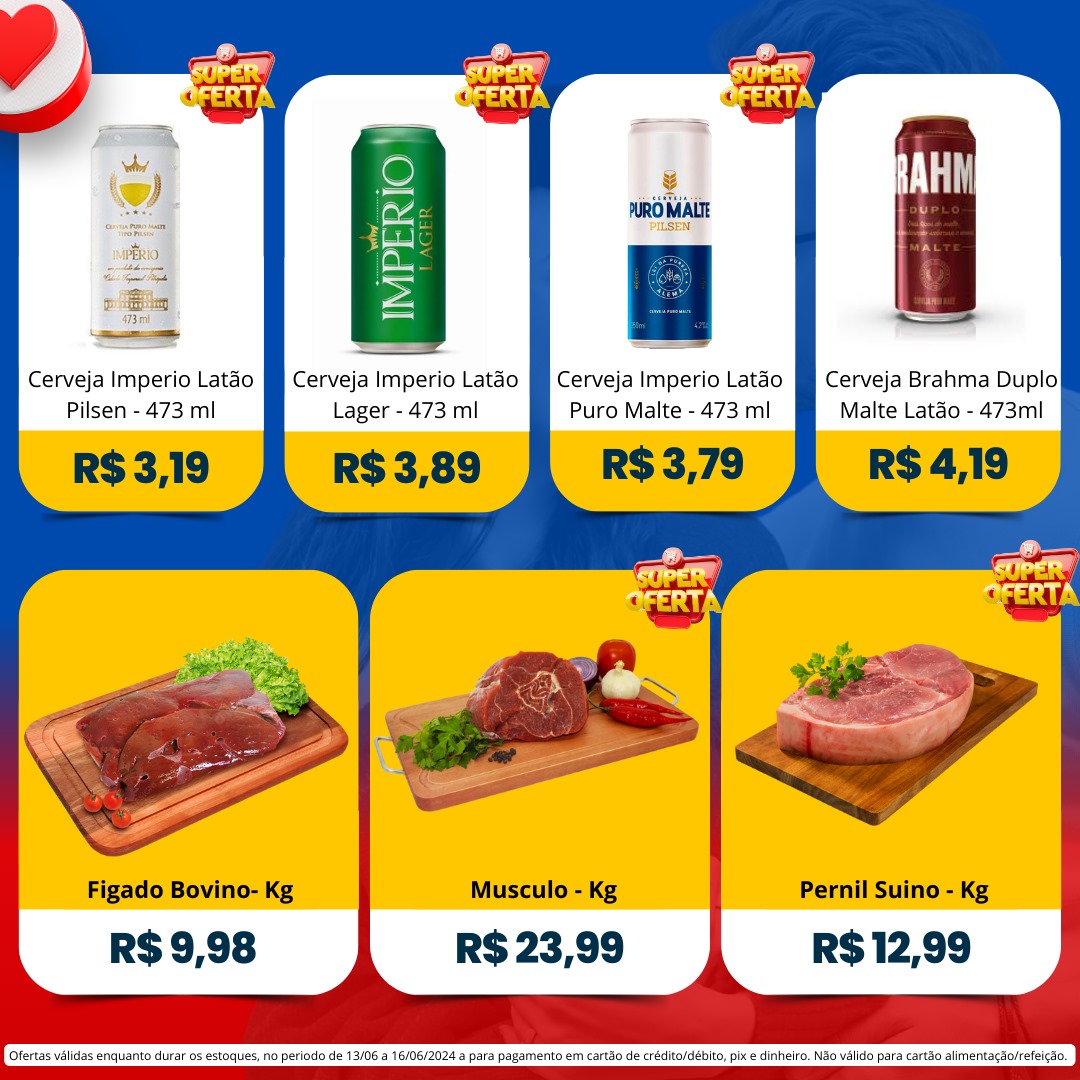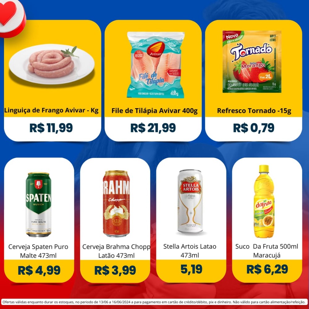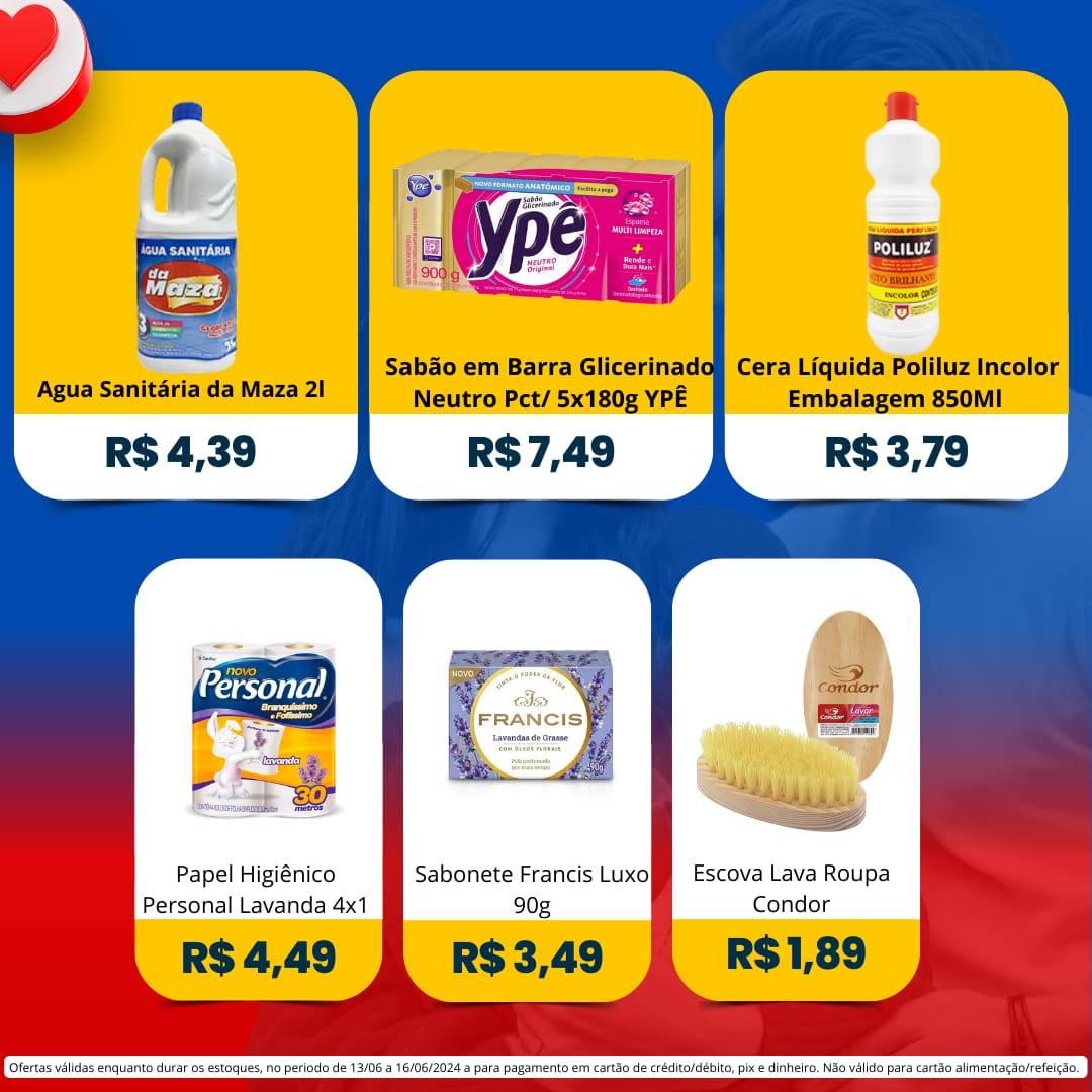 Ofertas válidas para pagamento em pix, dinheiro, cartão de crédito e debito, de 13/06 a 16/06, ou enquanto durarem os estoques