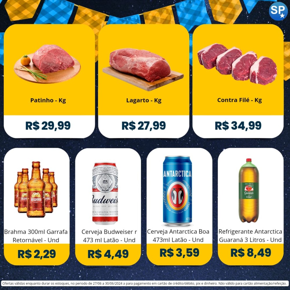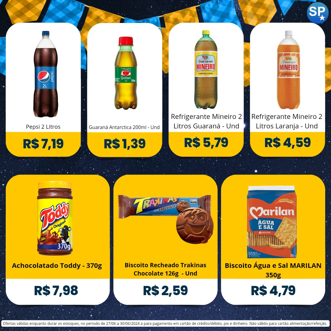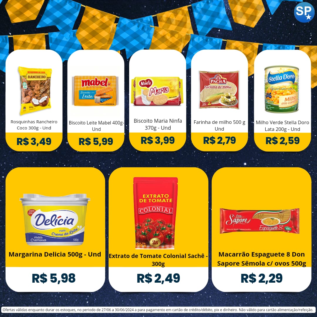 Ofertas válidas para pagamento em pix, dinheiro, cartão de crédito e debito, de 27/06 a 30/06, ou enquanto durarem os estoques.