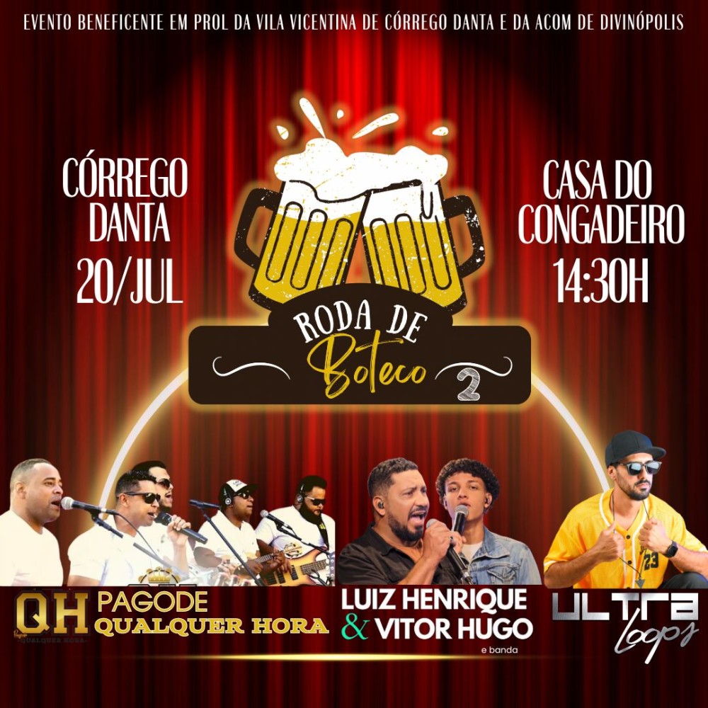 A segunda edição do Roda de Boteco de Córrego Danta acontece no próximo sábado (20.Junho.24), a partir das 14h30, na Casa do Congadeiro.