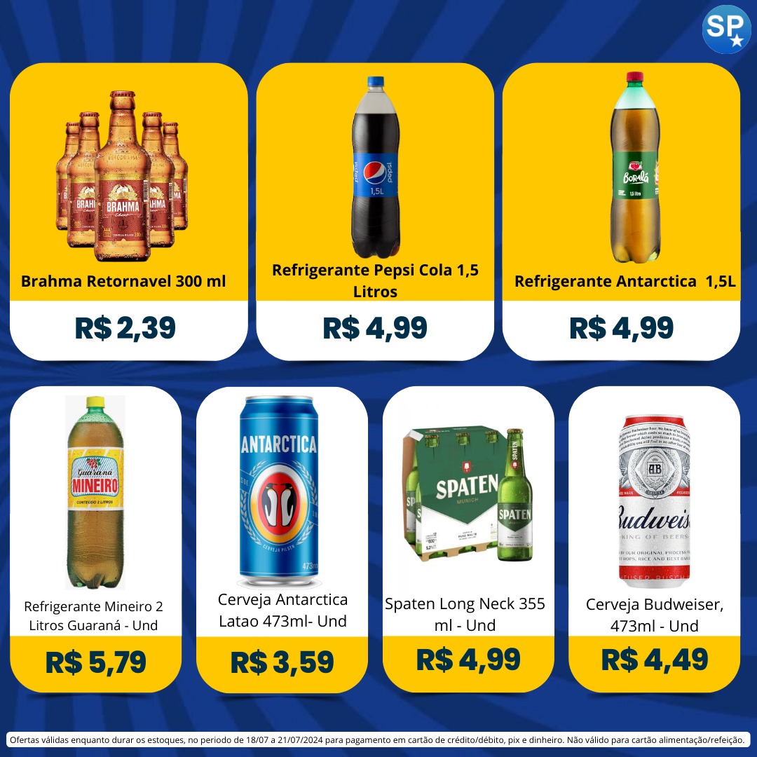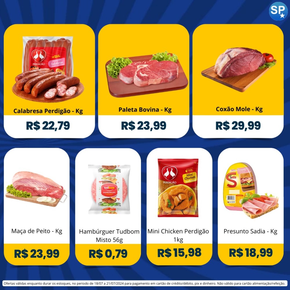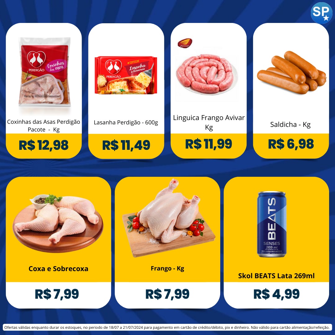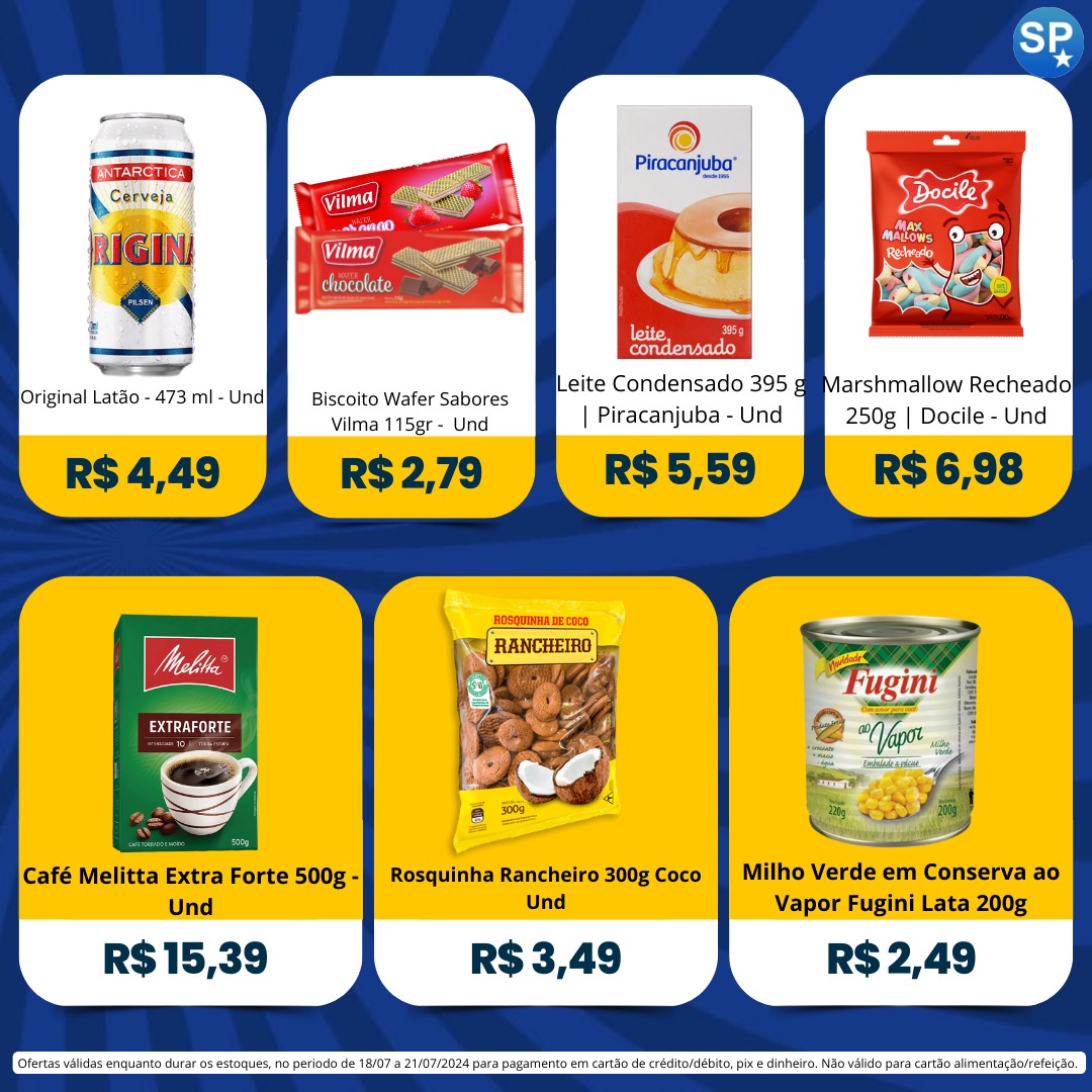 Ofertas válidas para pagamento em pix, dinheiro, cartão de crédito e debito, de 18/07 a 21/07, ou enquanto durarem os estoques.