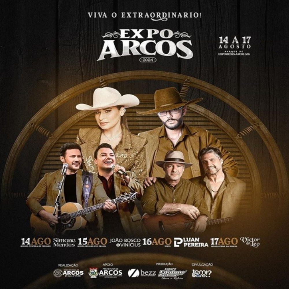 Vem aí a tradicional Expo Arcos 2024, que acontecerá de 14 a 17 de agosto, no Parque de Exposições.