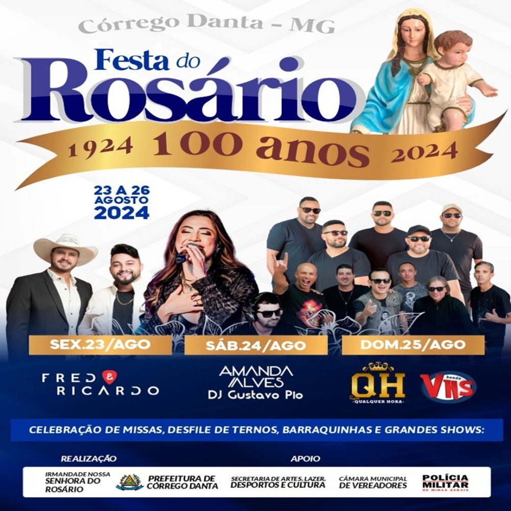A tradicional Festa de Nossa Senhora do Rosário de Córrego Danta celebra 100 anos e será realizada de 23 a 26 de agosto.
