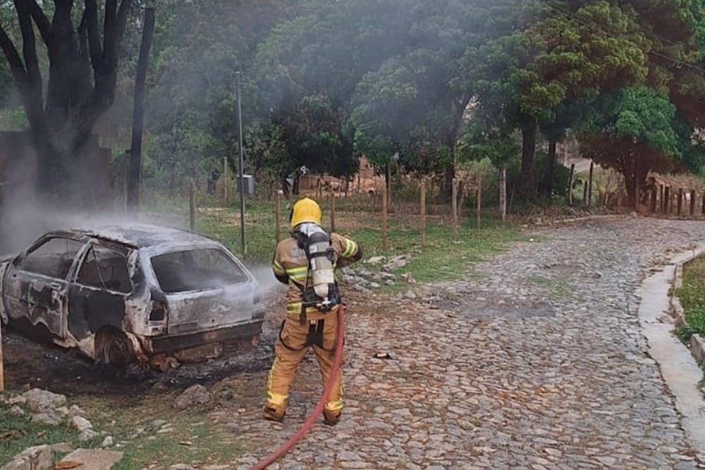 Segundo os bombeiros, ao chegarem ao local, encontraram um VW/Gol, com placas da cidade de Formiga, praticamente tomado pelas chamas.