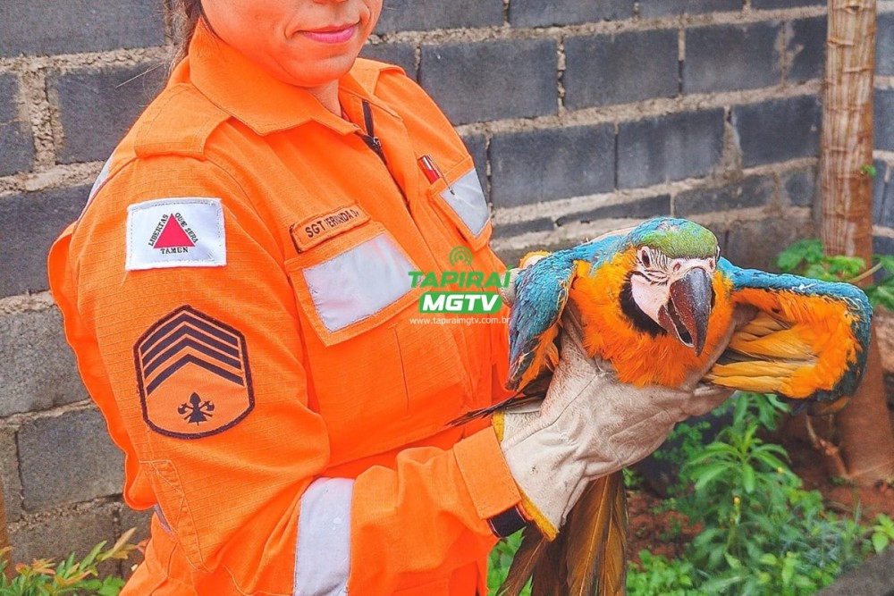 Na manhã desta segunda-feira (28 de outubro de 2024), uma arara-canindé que enfrentava dificuldades para voar foi resgatada pelo Corpo de Bombeiros no Bairro Santo Antônio, em Formiga.
