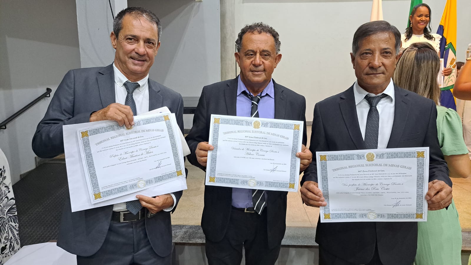 A cerimônia de diplomação dos candidatos eleitos para os cargos de prefeito, vice-prefeito e vereadores de Córrego Danta, ocorreu na tarde da última segunda-feira (02.dezembro.24). A cerimônia de diplomação aconteceu na cidade de Luz.